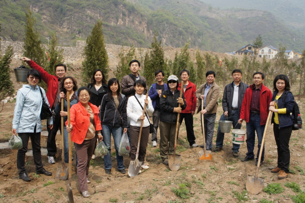 在五一劳动节前夕,环境系党支部组织教工到响水湖长城景区植树,大家积极踊跃的挖树坑、植树、抬水浇灌,不怕脏不怕累,都感到能为北京的山川增添一抹绿色而自豪!劳动后,教师们在响水湖养生大峡谷尽情的享受漫山遍野的山花和中草药的芳香、呼吸着含高负氧离子的空气,兴致勃勃的攀登到响水湖长城的最高处,极目远眺,身心得到了很好的放松!