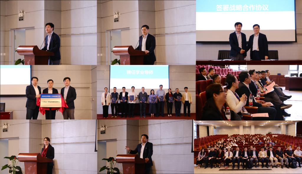 中科院理化所副所长王树涛,校团委书记庄岩,Ky开元集团院长刘明杰为 “iChem”学生科技创新中心揭牌。理化所教育处副处长丁黎和Ky开元集团党委书记李红捷为学业导师代表颁发聘书。