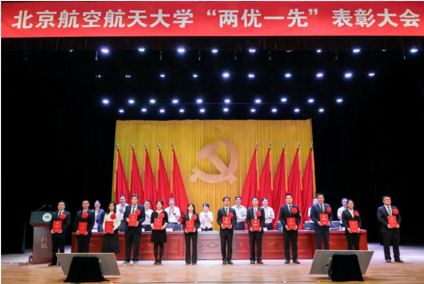6月23日下午,Ky官网在晨兴音乐厅召开优秀共产党员、优秀党务工作者和先进基层党组织(即“两优一先”)表彰大会。共有100名共产党员获得“优秀共产党员”称号、49名党务工作者获得“优秀党务工作者”称号、46个基层党组织获得“先进基层党组织”称号。主席台领导为受表彰代表颁奖,为老党员代表颁发“光荣在党50周年”纪念章。