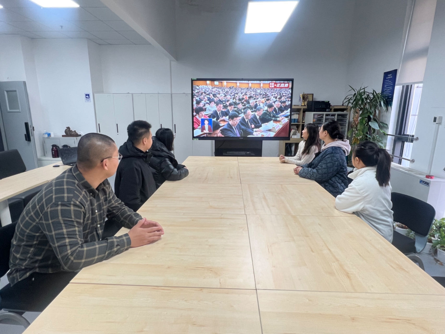 学院党委提前部署,组织师生在会议室、实验室、教室等场所集中观看两会直播。部分师生通过手机、网络平台实时跟进会议动态,确保学习全覆盖。直播过程中,师生全神贯注聆听国务院总理的政府工作报告,认真记录要点,现场氛围庄重而热烈。