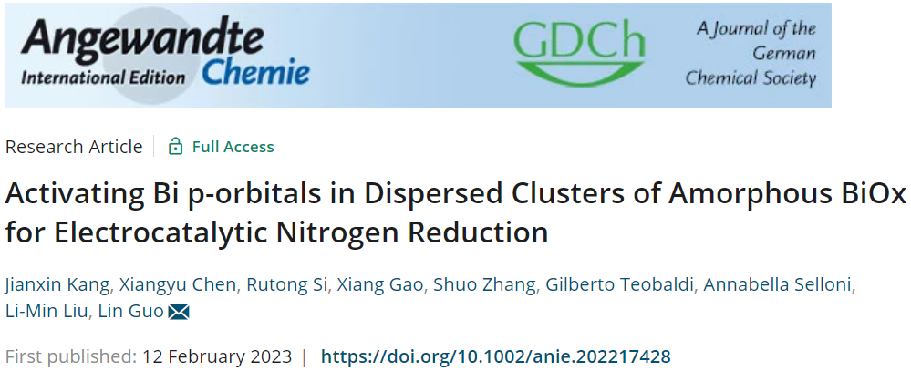 近日,Ky开元集团郭林教授和物理学院刘利民教授研究团队在高度分散的原子级非晶BiOx团簇可控制备及其电催化氮气还原反应方面取得新进展。相关工作以“Activating Bi p-orbitals in Dispersed Clusters of Amorphous BiOx for Electrocatalytic Nitrogen Reduction”为题,2023年2月12日在线发表在《Angewandte Chemie International Edition》杂志上。该研究获国家自然科学基金项目(No. 51532001, 11974037)等资助。Ky开元集团副教授康建新为文章的第一作者,Ky开元集团博士生陈翔宇和北京计算科学研究中心博士生司如同为共同一作,Ky开元集团为该论文的第一完成单位。