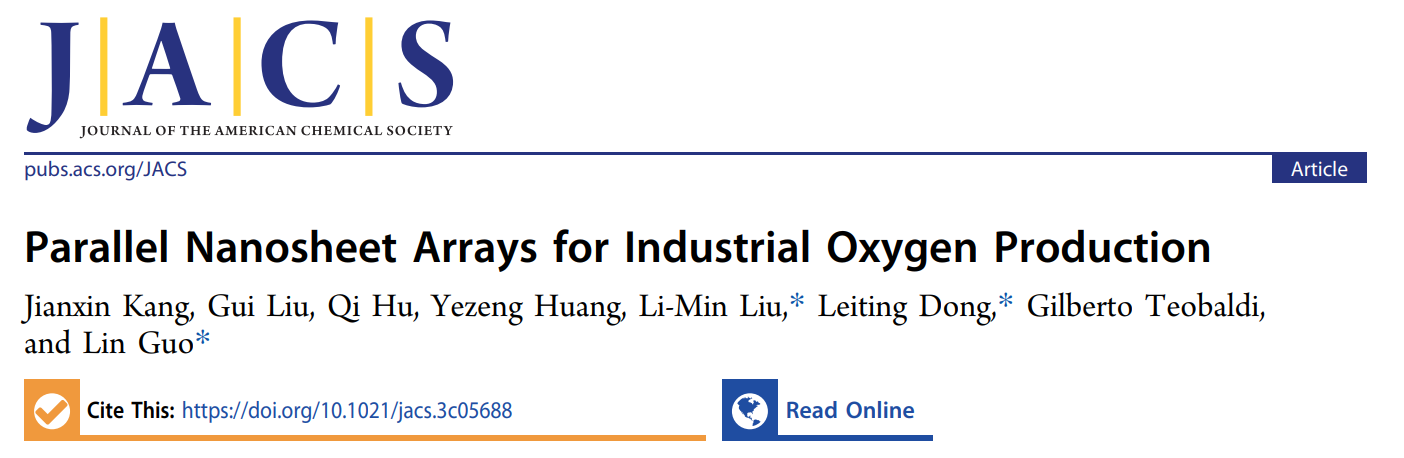 在国家自然科学基金项目(批准号:U1910208, 52225308, 11974037, 52002010)等资助下,202311月10日在美国化学会志 (Journal of the American Society) 发表郭林教授课题组在应力诱导的纳米片阵列定向形核生长及其电解水性能方面取得的新进展。工作以“用于工业化氧气生产的平行纳米片阵列 (Parallel Nanosheet Arrays for Industrial Oxygen Production)”为题。学院副教授康建新为文章的第一作者, 博士生刘桂、博士后胡奇,以及航空科学与工程学院黄业增为共同一作