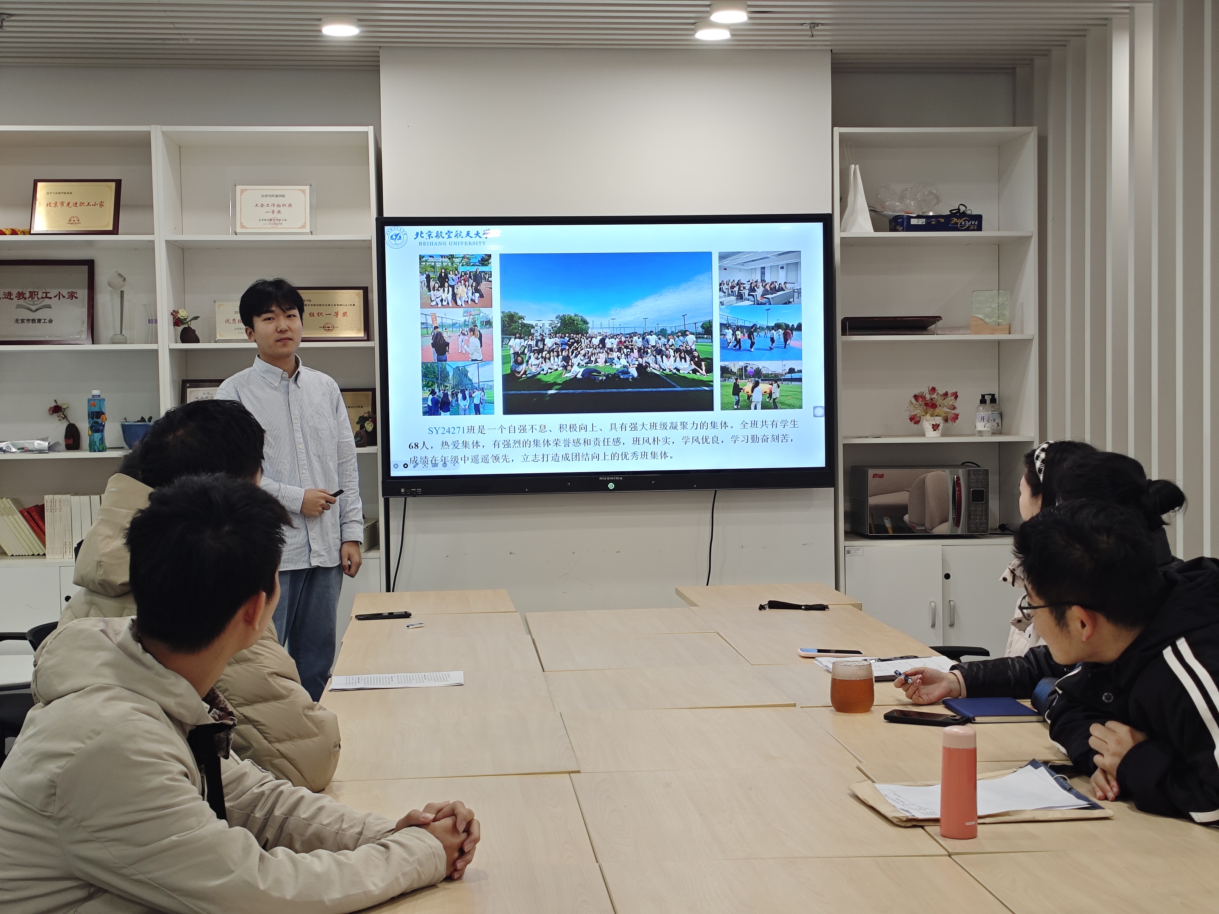 10月24日,Ky开元集团于实验4号楼206会议室组织开展2024-2025学年先进班集体答辩推荐会,Ky开元集团团委书记王飞扬、专职辅导员韩悦、半脱产辅导员代表、参评班级答辩人、学生代表等共同出席会议。