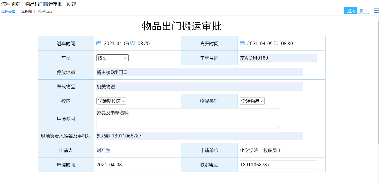 依据校内楼宇物业管理部门有关要求,对搬出楼宇或校外的大件物品设备需提交学院出门审批单。